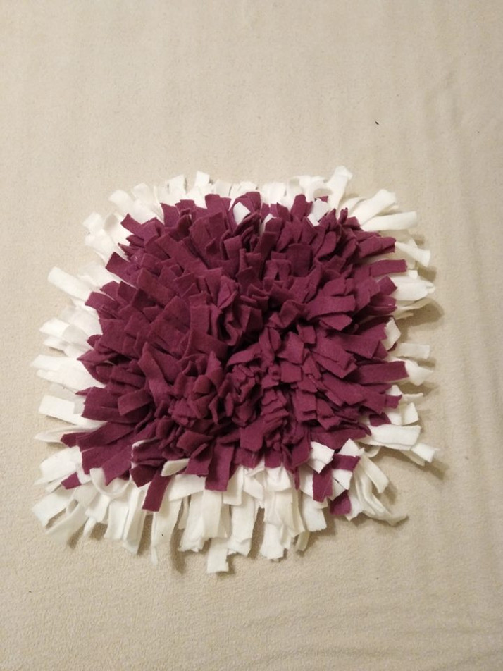 Kobereček rozložíte na neklouzavý povrch.Necháte pejska přihlížet,ale aby zatím nezasahoval.Do koberečku rozmístíte malé pamlsky na různá místa.Pak dáte pejskovi pokyn,např.čichej nebo hledej.