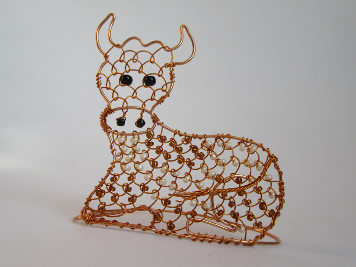 Z měděného lakovaného drátu, samostojný. Modelovaný v ruce.