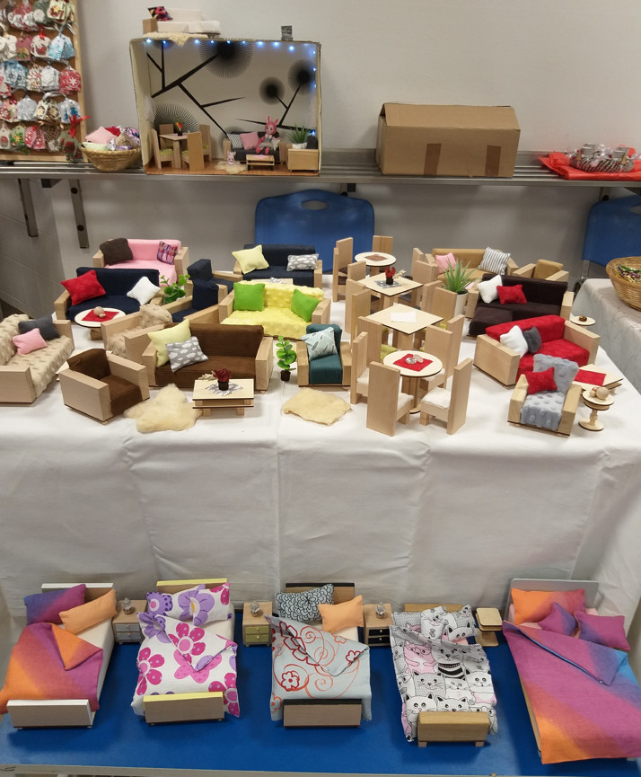 Prodávám i na Vánočním jarmarku v ZŠ Lipence. Toto je můj stůl s vystavenými kousky