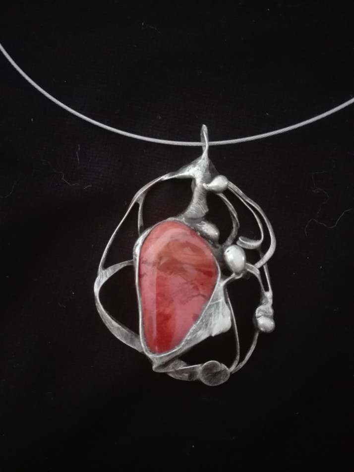 cínovaný náhrdelník s kamenem 4,5x5cm se závěsným lankem (kroužkem) cena 390,- vč.DPH