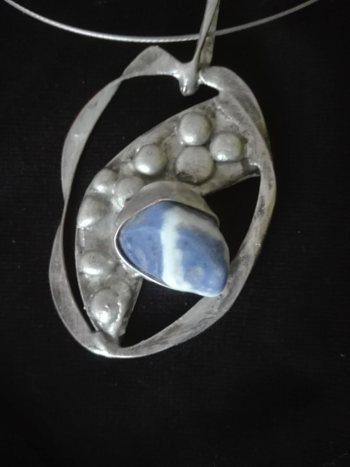 cínovaný náhrdelník s kamenem na zavěšení s kroužkem, 4,5x6,5cm, cena 360,-vč.DPH