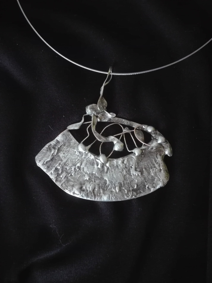 cínovaný náhrdelník na zavěšení, vyrobeno z bezolovnatého cínu a mědi, 6x8cm, cena 320,- vč.DPH