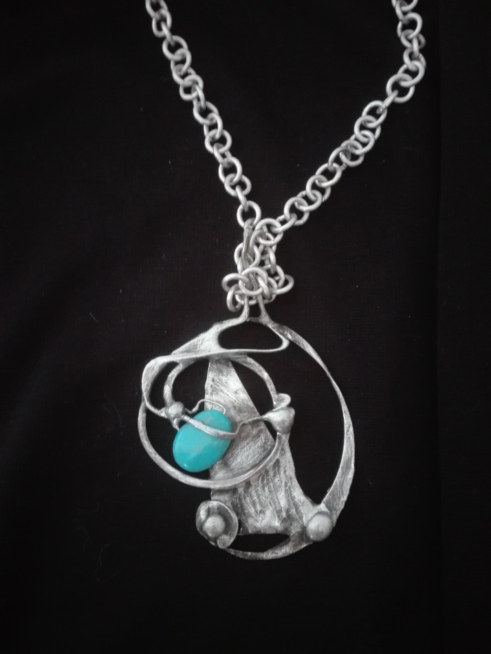 cínovaný náhrdelník s kamenem na zavěšení s řetízkem, 7x5,5cm, cena 350,-vč.DPH