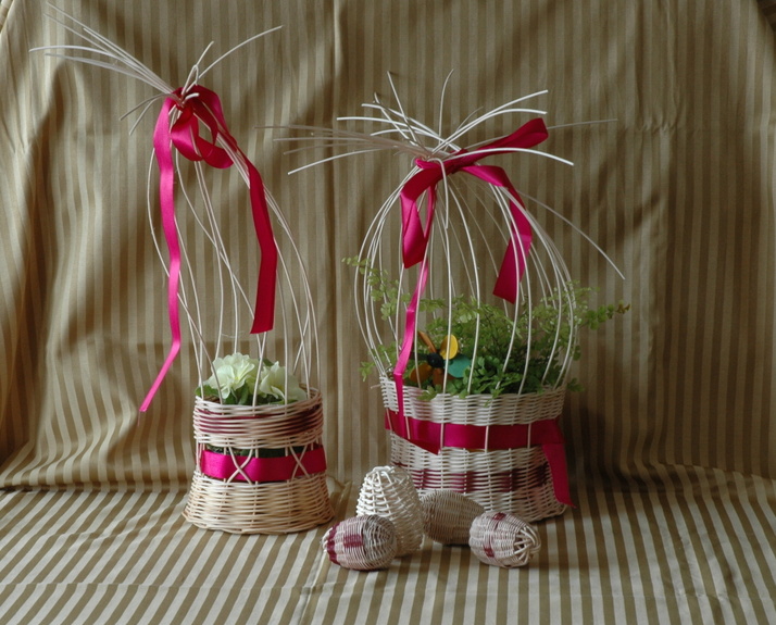 Košíček je velmi dekorativní, je určen na dekoraci stolu pro různá sváteční období v roce. Je ozdoben hedvábnou stuhou. Velikost je cca 20x40 cm. Cena je dle velikosti, cca Kč 220,-.