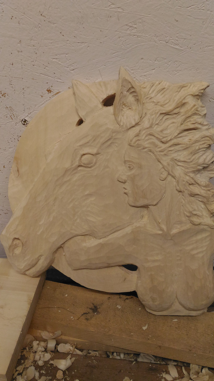 Téměř hotová řezba před začištěním a před broušením.