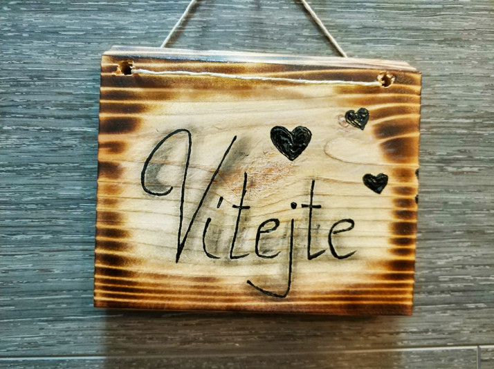 Dřevěná cedulka,modřín...rozměry 12cm*11cm,cena 140kč