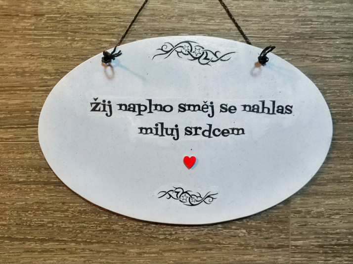 Oválná cedulka s popisem rozměry na délu 29 cm šírka 18 cm,cena 210kč