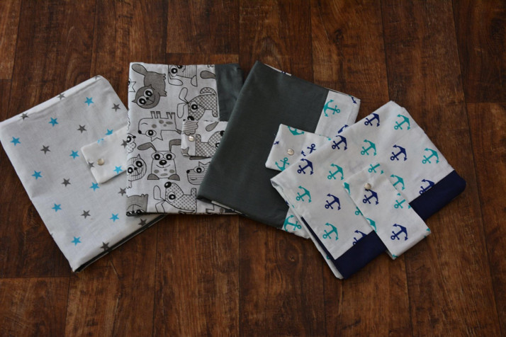 Plenkovníky jsou vyztužené a ze 100% bavlny. Mají tři až čtyři kapsy, jednu na vlhčené ubrousky, úchyt na dudlík a patenty na zapínání.