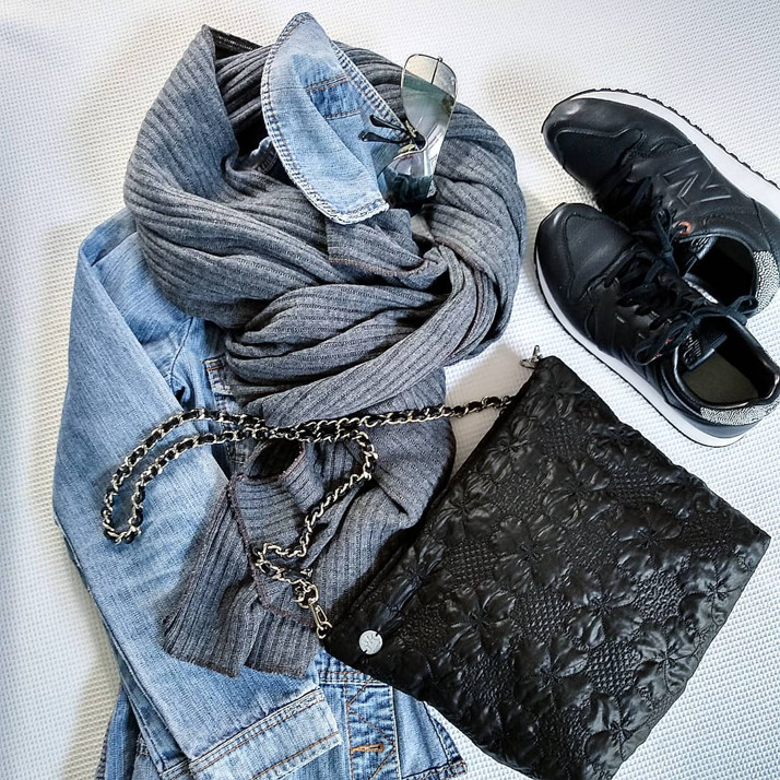 28.09.2018 Insta - Venku všichni nosí trička, jen já lazar šáličku, aby mě neofouklo, ale ven se na chvilku musí! #sala #rymicka #sick #scarf #mmstudioscarf #rayban #stefanel #handsfree #overcrossbag #mmstudiobag #chanelinspiration #newbalance #footshop #shortwalk