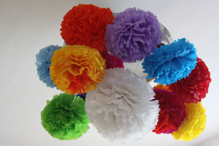 závěsné papírové květiny určené k dekoraci v interiéru