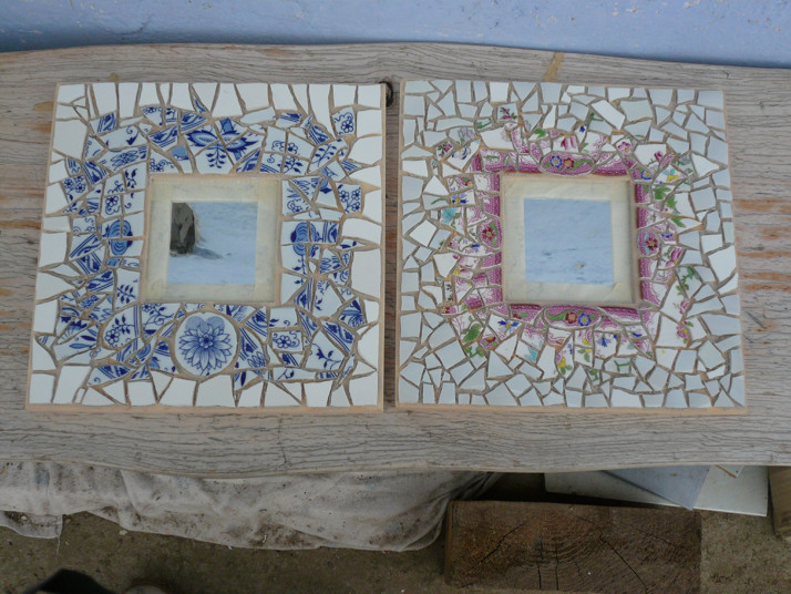 Mozaikové zrcadlo s cibulákovým vzorem....