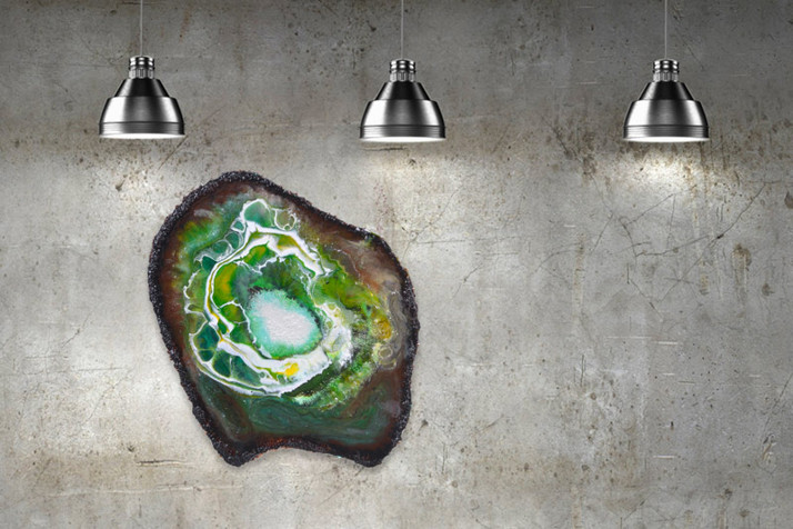 Geoda z pryskyřice napodobuje řez nerostem