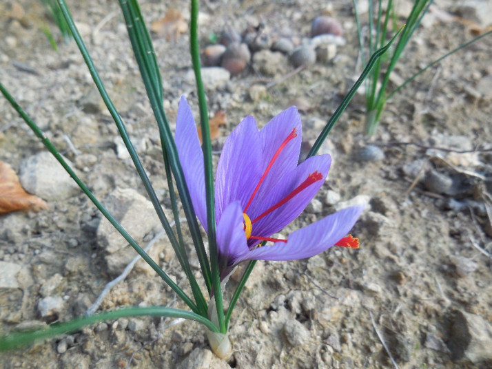 Květ Krocusu setého těsně před sklizní, 3 červené čnělky jsou to co z něj přesně potřebujeme - to je šafrán