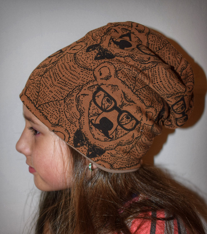 Krásná čepice pro kluky, MEDVĚDI na hnědé, oboustranná úpletová čepice, velikost pro obvod hlavy 50-52cm, homelesska lehce padlá dozadu. Podšitá béžovým úpletem. Úplet atest pro děti.Doporučení prát na 30st, ne do sušičky. 92%bavlny, 8%elastanu. Ušiji i jinou velikost.140,-