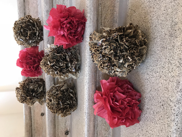 Leopard a bordó pompomy