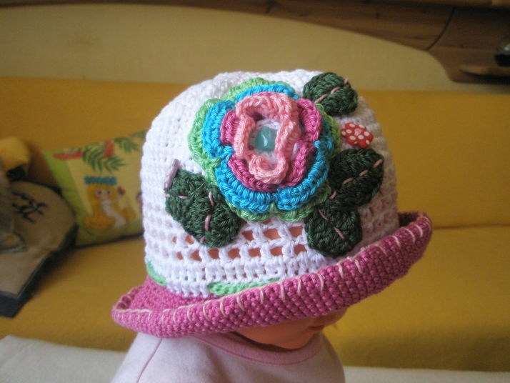 Háčkovaný klobouček ze 100% bavlny...příze Camilla