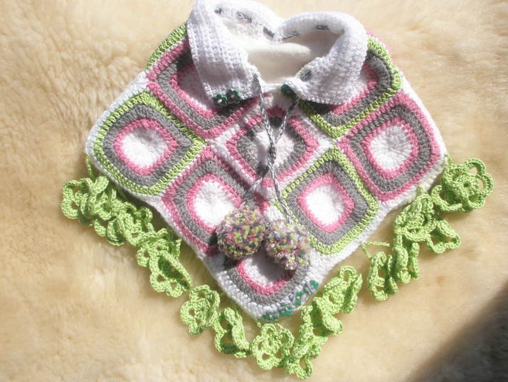 Háčkované pončo z příze Camilla plus akryl,podšité fleecem.