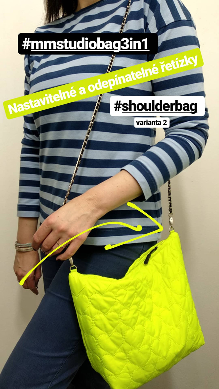 Moje kabelky Mayerky 3v1 se dají nosit na několik způsobů - zde přes rameno varianta 2 a díky nastavitelnému řetízku si délku můžete upravit.