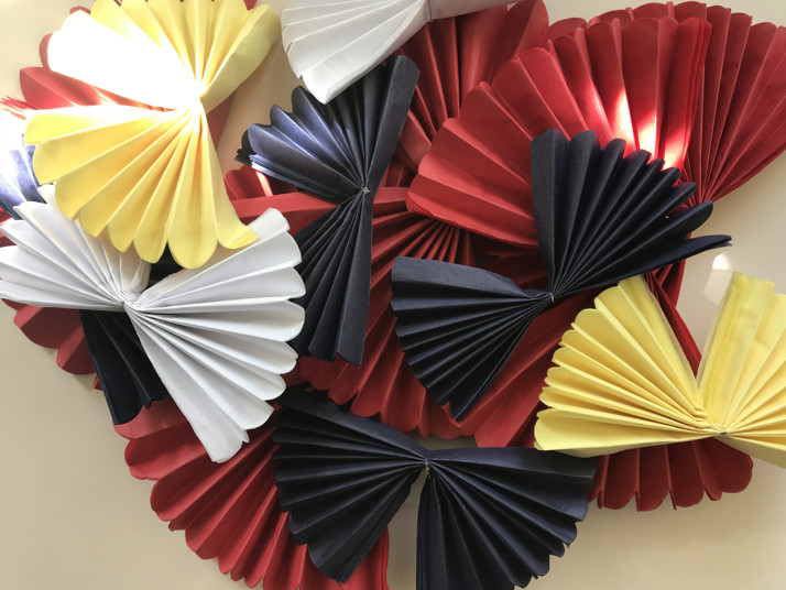 Pompomy: rouge, půlroční modrá, bílá, světle žlutá