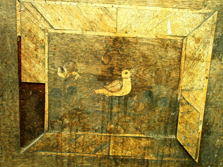 Krásný a typický detail ptáčka z truhly. Truhla cca kolem r.1800.