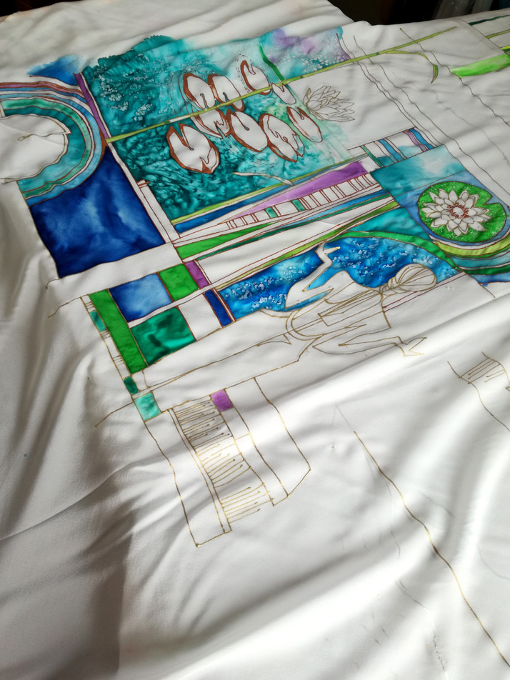 Připravujeme do prodeje šaty z hedvábí, malované vlastními vzory.