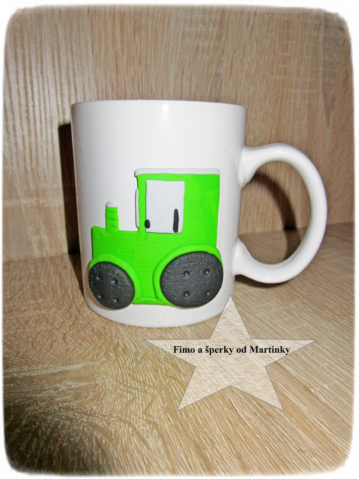 Fimo traktor na hrníčku. Cena 140 kč. Skladem 1 kus