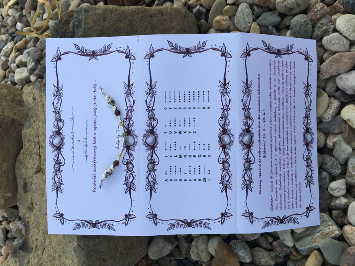 Tato karta se přikládá ke každé objednávce. Naleznete na ní přiložený náhrdelník, nápovědu na vyluštění tajného vzkazu a popis konkrétních drahokamů a polodrahokamů