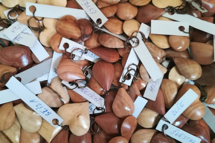 Koláž z náušnic. Nejrůznější druhy dřeva.