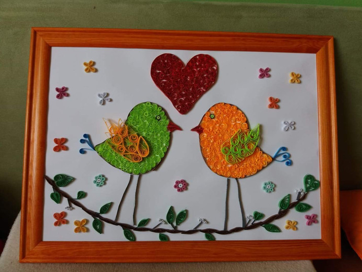 Ptačci vyrobeni technikou Quilling