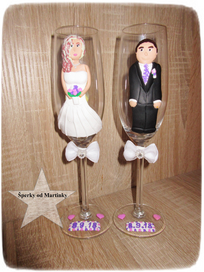 Svatební skleničky vyráběné přímo na přání. Cena 120 kč / kus