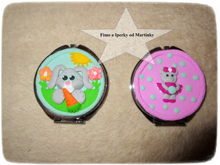Fimo zrcátka vhodné do každé kabelky. Cena 120 kč/kus-prodáno,mohu vyrobit další i jiné motivy ( každý kus originál! )