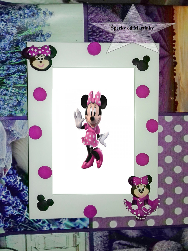 Fotorámeček s minnie mouse - fimo. Na fotky 10x15 cm. prodáno,mohu udělat další- každý kus originál!