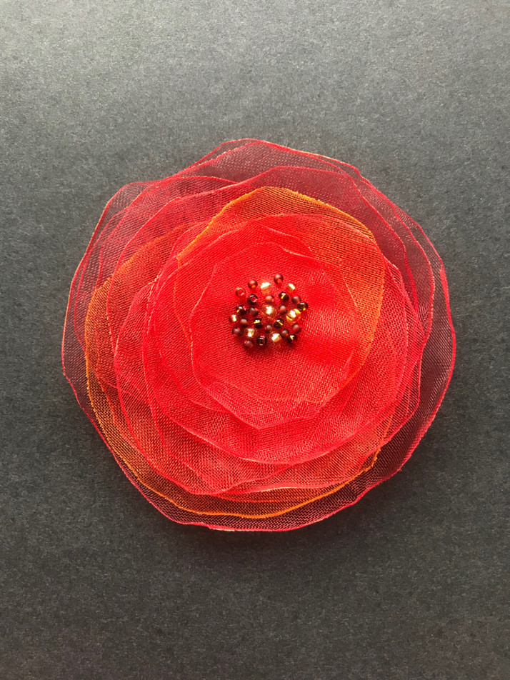 Červeno-oranžová brož, v barvách vlčího máku :-)