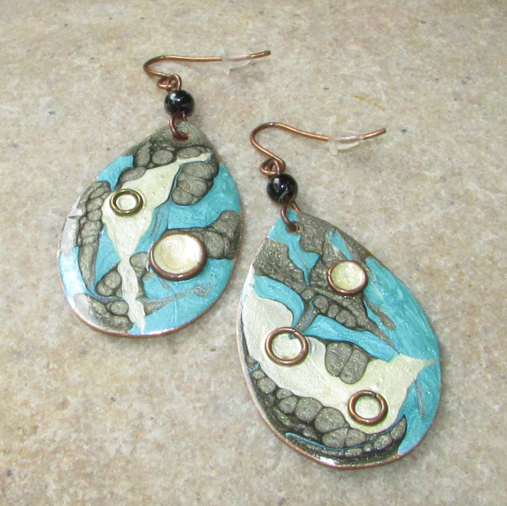 Měděné náušnice, ručně malované.
