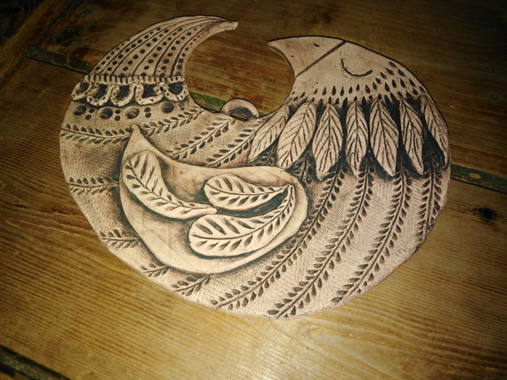 Holubice z pálené hlíny s patinou. Rozměry š:200mm v:170mm