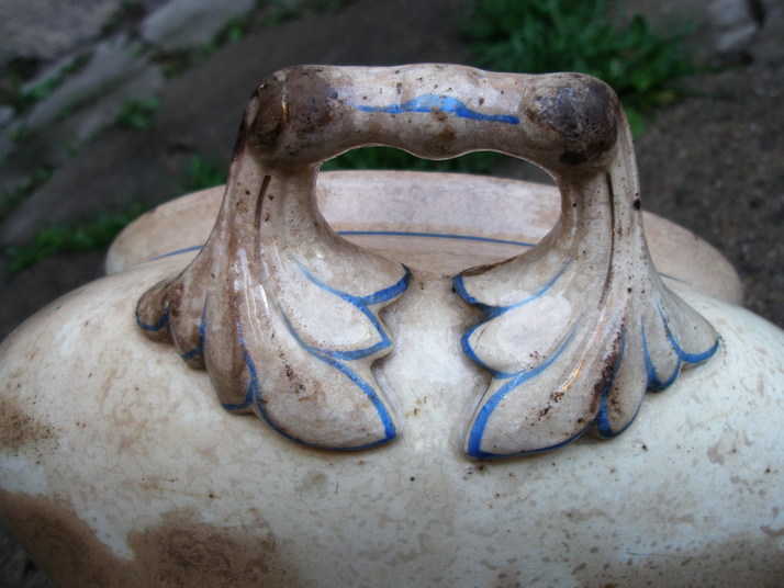 Detail teriny z 1.pol. 19.stol. Kamenina. Vtlačená značka. Nečitelné.