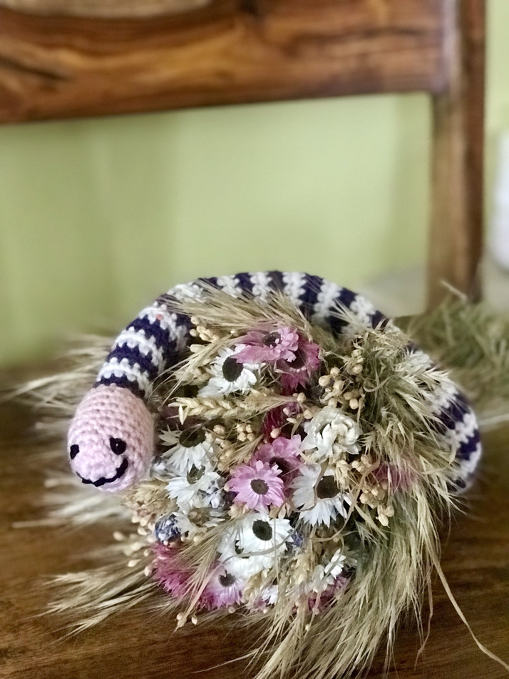 Háčkovaná žížala která má ráda pruhy a má pořád dobrou náladu