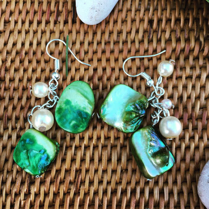 Nabízím náušnice Oceán zelené korálky jsou perleťové, perličky jsou napodobeniny perliček. Cena 150Kč