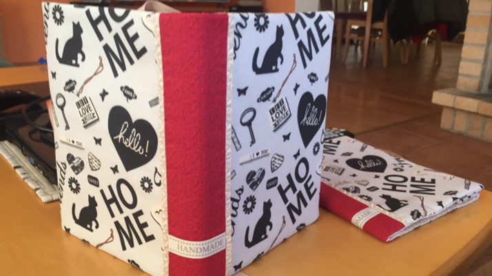 1Obal kočky s červeným hřbetem.