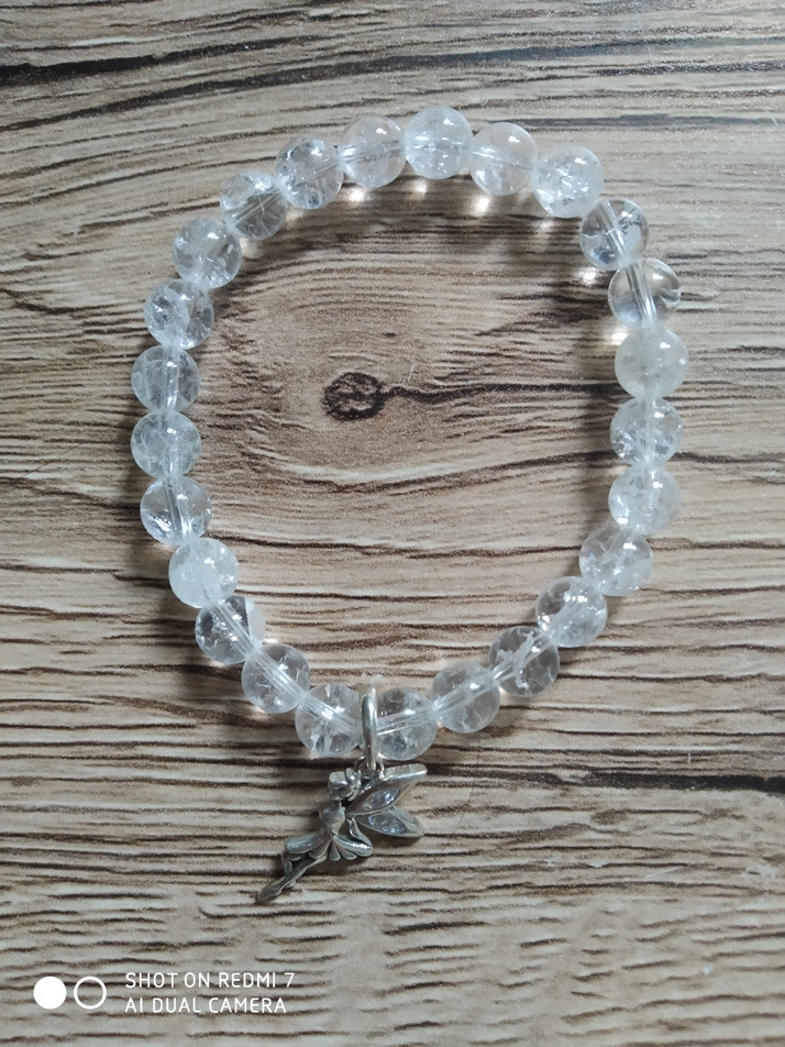 náramek dámský, dívčí, složení minerálů: praskaný křišťál, doplněn o stříbrný komponent (925) víly
