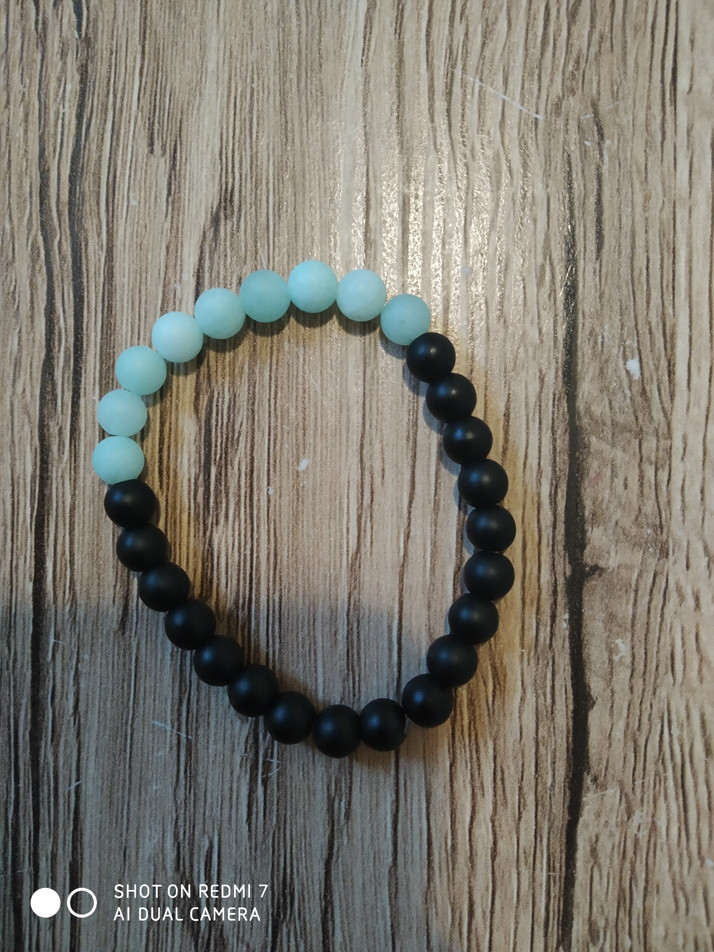 náramek dámský, dívčí, složení minerálů: černý onyx, matný "zmrzlý" amazonit modré barvy, sířka zápěstí 15cm, průměr kamenů 6mm