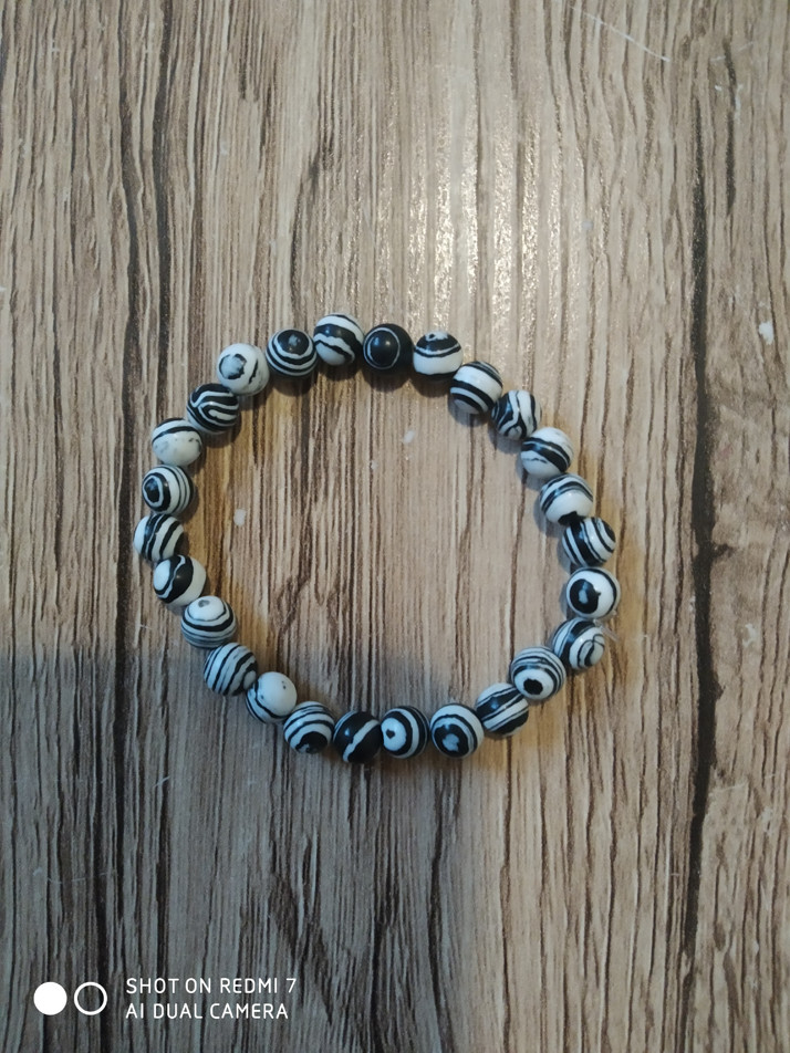 náramek dámský, dívčí, složení minerálů: černobílý malachit, šířka zápěstí 15cm, průměr kamenů 6mm