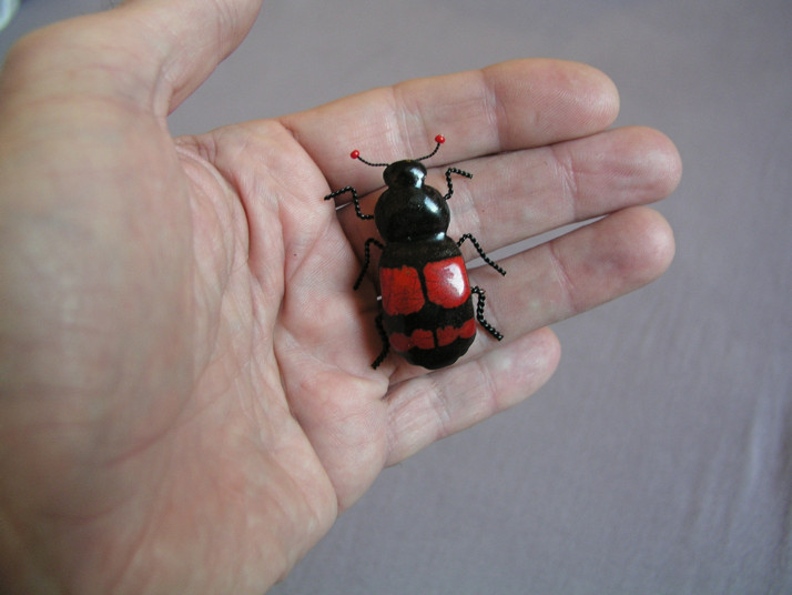 Hrobařík vyrobený na zakázku pro entomologa do kazety s dalšími sedmi chrobáky, všichni podle skutečný vzorů z přírody.