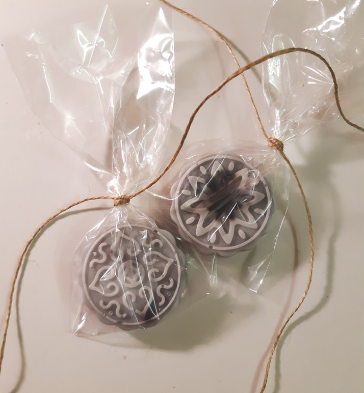 Okrúhle mydlo je eukalyptovej arómy. Základ mydla je z mydlovej hmoty s kozím mliekom.