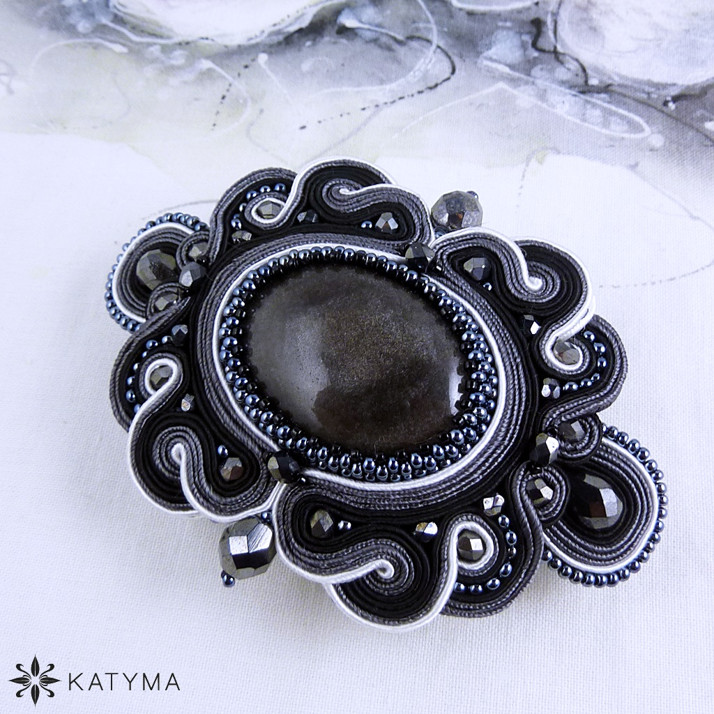 Spona sutašková stříbrný obsidián