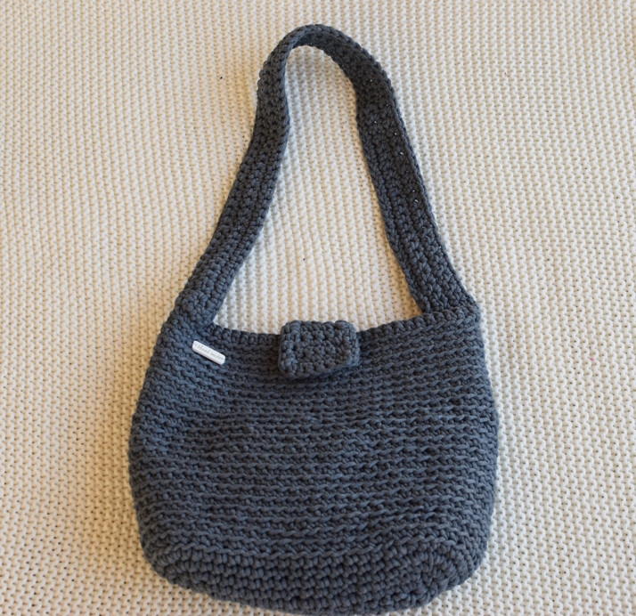 Šedá háčkovaná kabelka z bavlněného špagátu.