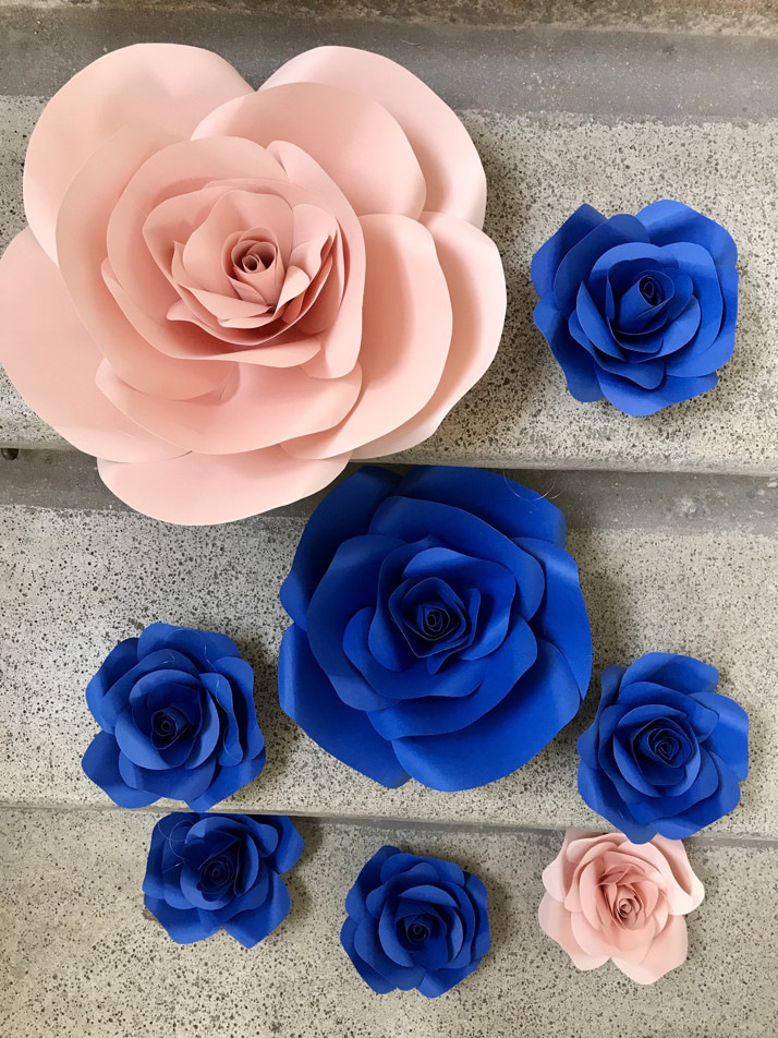 Papírové kytky, modré a barva Rosa
