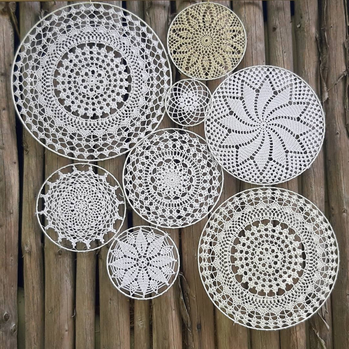 Háčkované krajky v kruzích k dekoraci, na zeď, na výrobu vlastních lapačů, ke svatební dekoraci, dozdobte a sestavte podle vlastní fantazie.