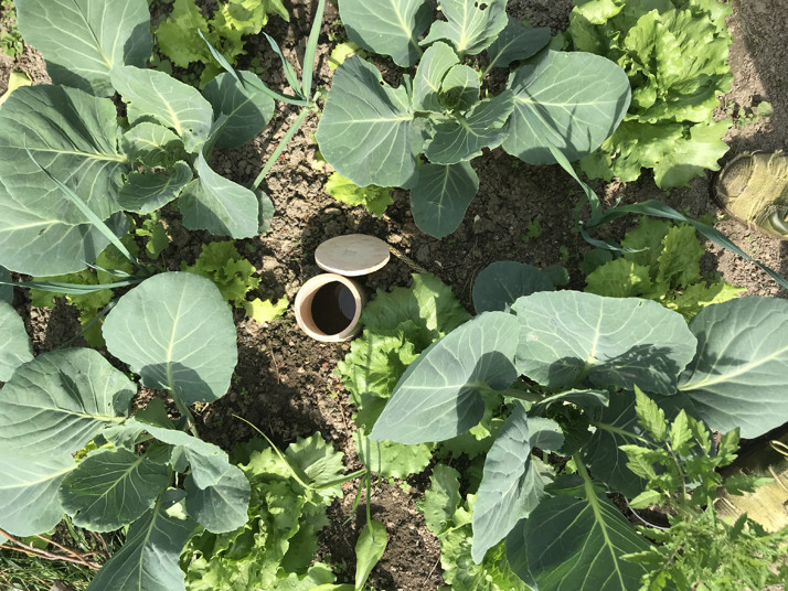 Zavlažovací nádoba OLLA v záhoně se zelím