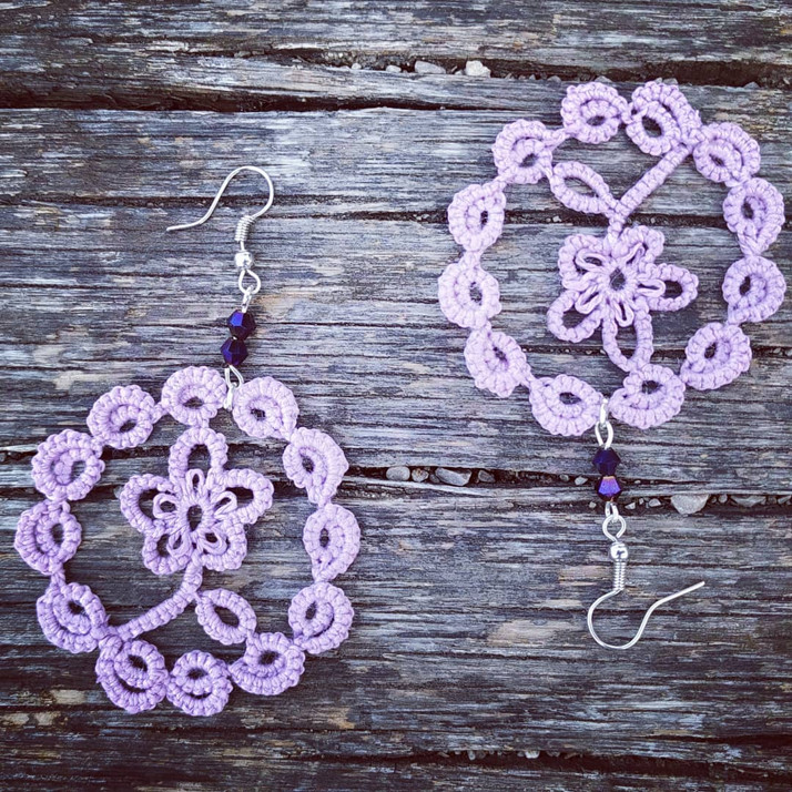 Frivolitkove naušnice vyrobené z bavlny Perle
